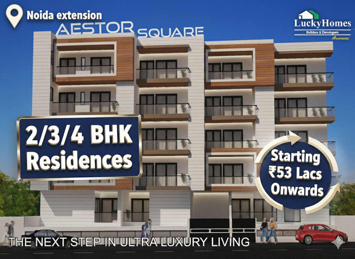 Aestor Square is more than just another residential project in Noida Extension. Developed by Lucky Homes, this low-rise residential community is designed for families who value peace, space and long-term comfort. With beautifully designed 2BHK ,3 BHK and 4 BHK builder floors, Lucky Homes Builders offers a balanced lifestyle in one of the fastest growing residential hubs of NCR. With only six towers containing ninety units, the density remains low, creating a peaceful environment where residents know their neighbors, children play safely, and families enjoy true privacy. Lucky Homes Builders & Developers is India's prime real estate developer.